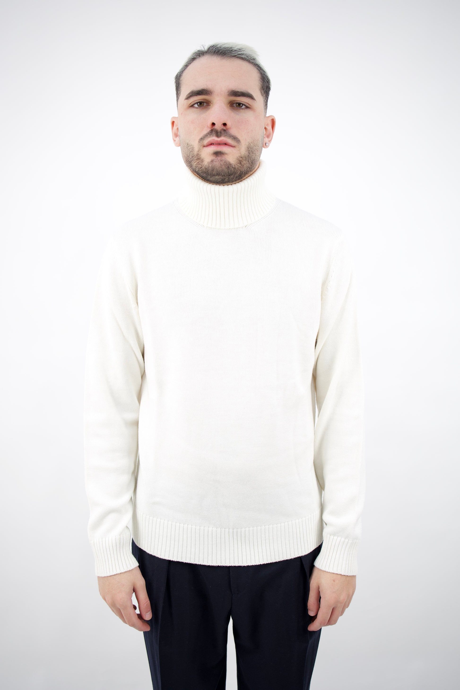 Maglia dolcevita in lana merino rasata.