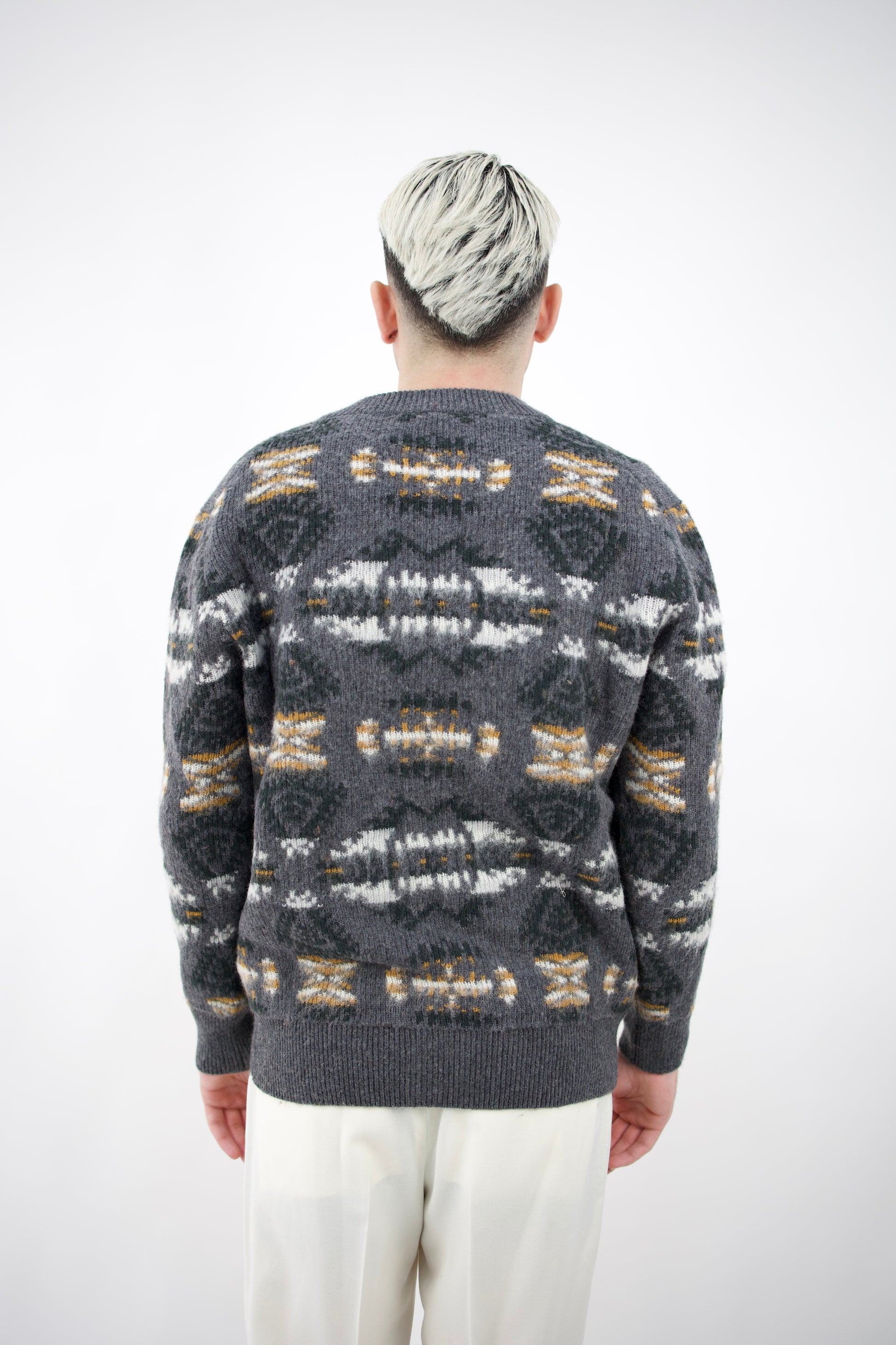Cardigan jacquard garzato realizzato in lana vergine & lana alpaca.