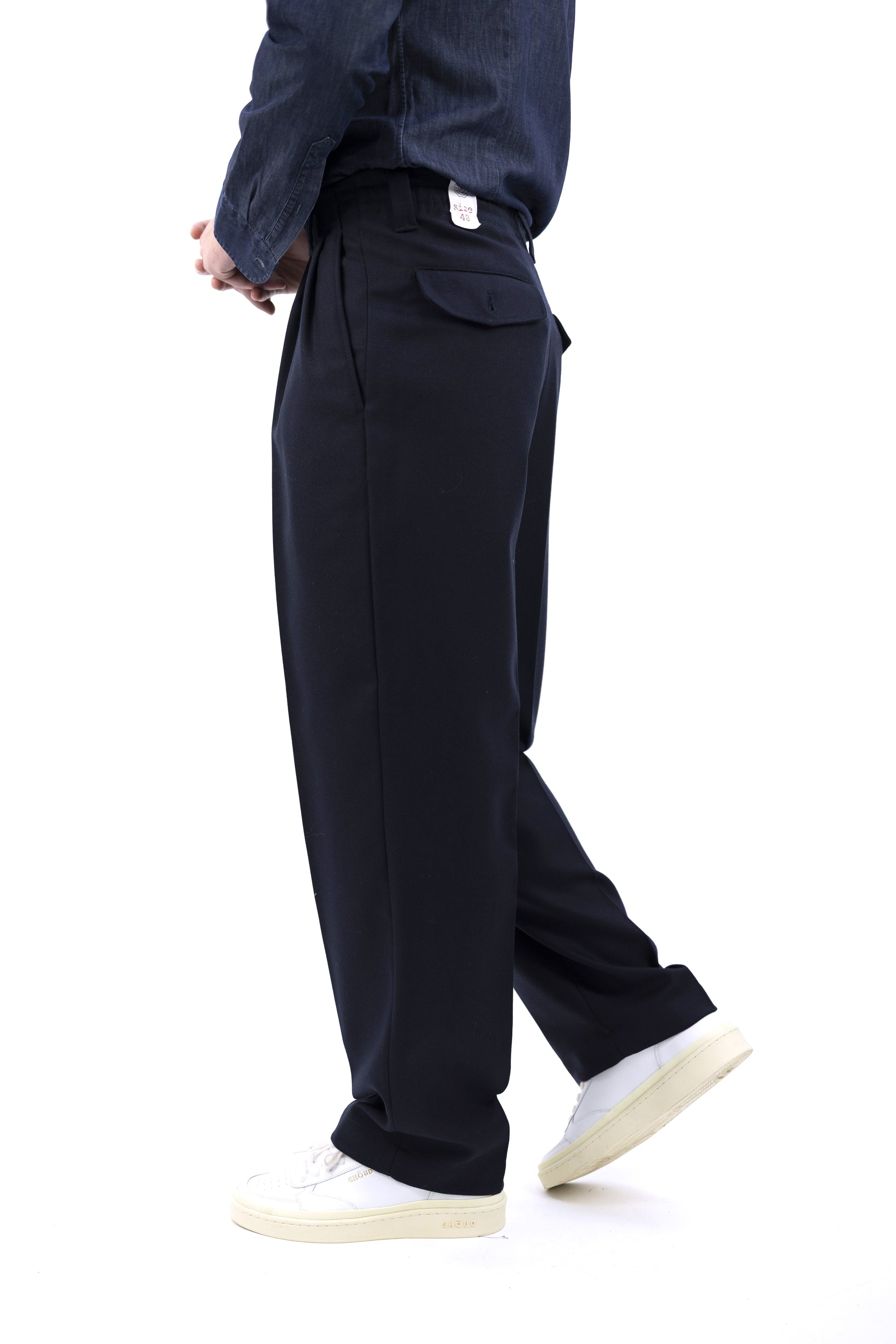 Pantalone MARK non trattato realizzato nella calda nuance del blu. La gamba è larga e la vestibilità è funky. Dotato di tasche posteriori con alette e doppia pince, questo capo dall'estetica decisamente casual assicura uno stile che non passa inosservato.