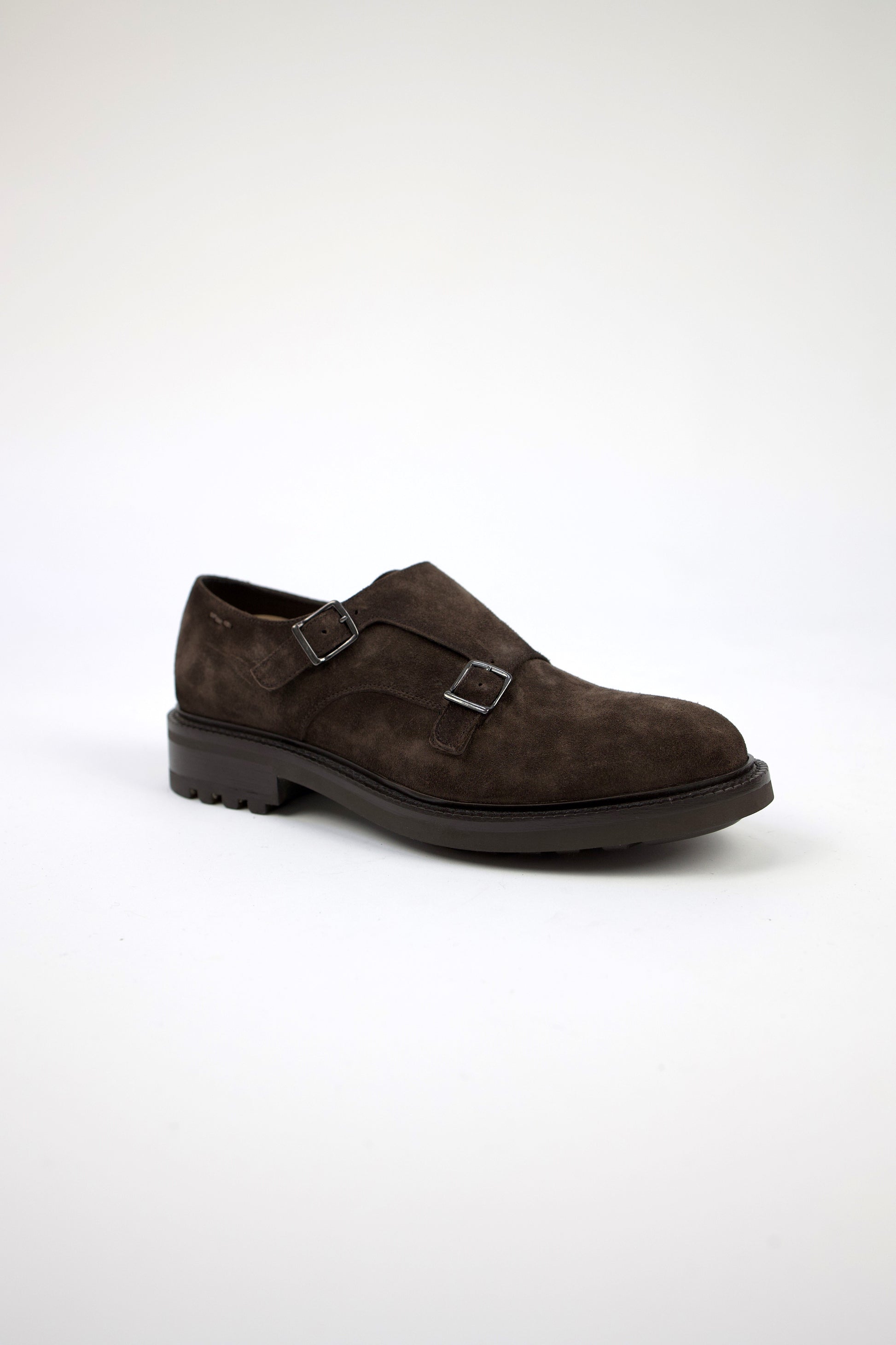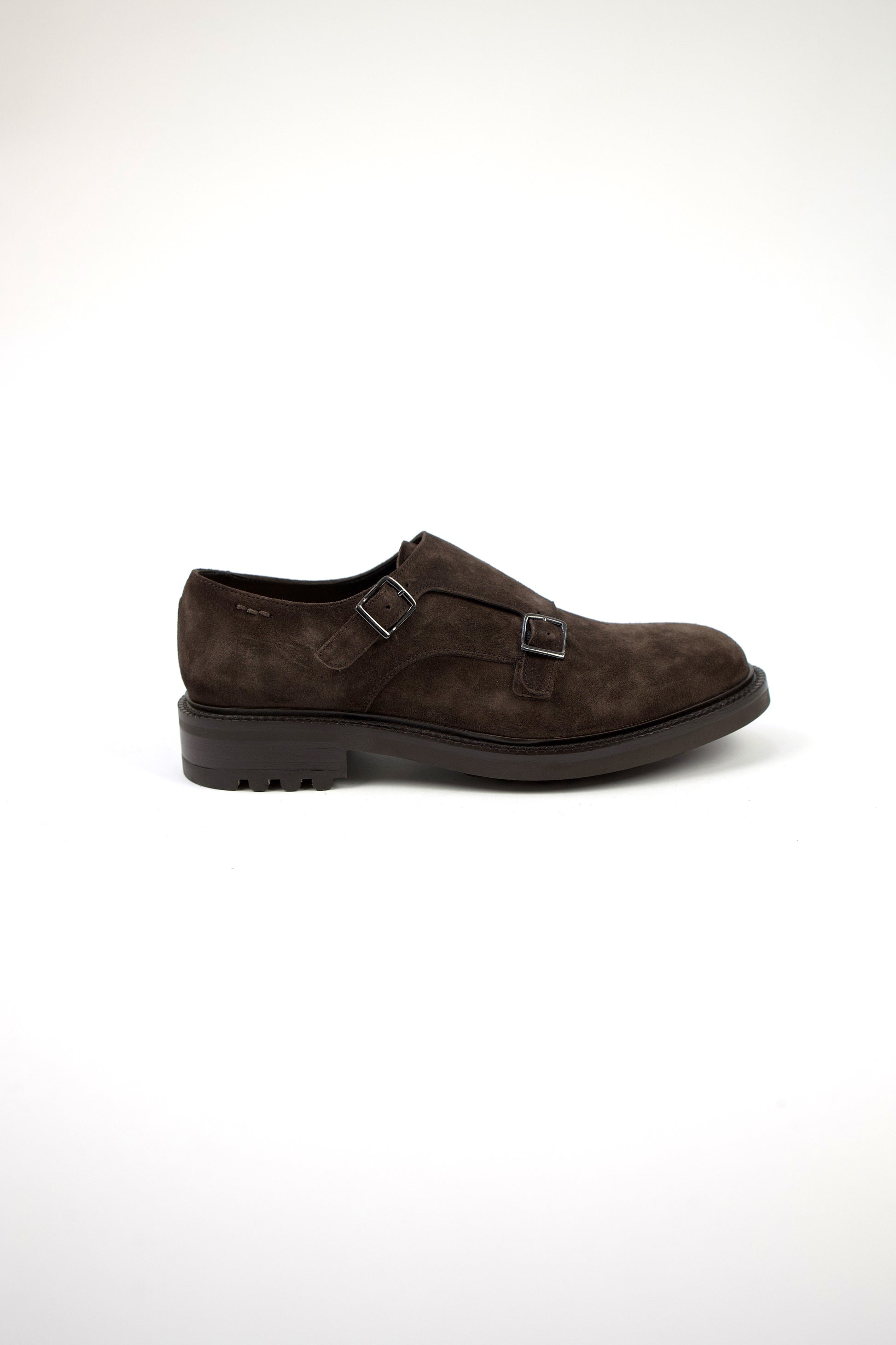 Mocassino doppia fibbia realizzata artigianalmente in camoscio marrone corvino. La suola robusta in gomma antiscivolo offre stabilità e durata, mentre il fussbett tecnico estraibile garantisce massimo comfort tutto il giorno. Design classico e anima contemporanea esaltano uno stile senza tempo.