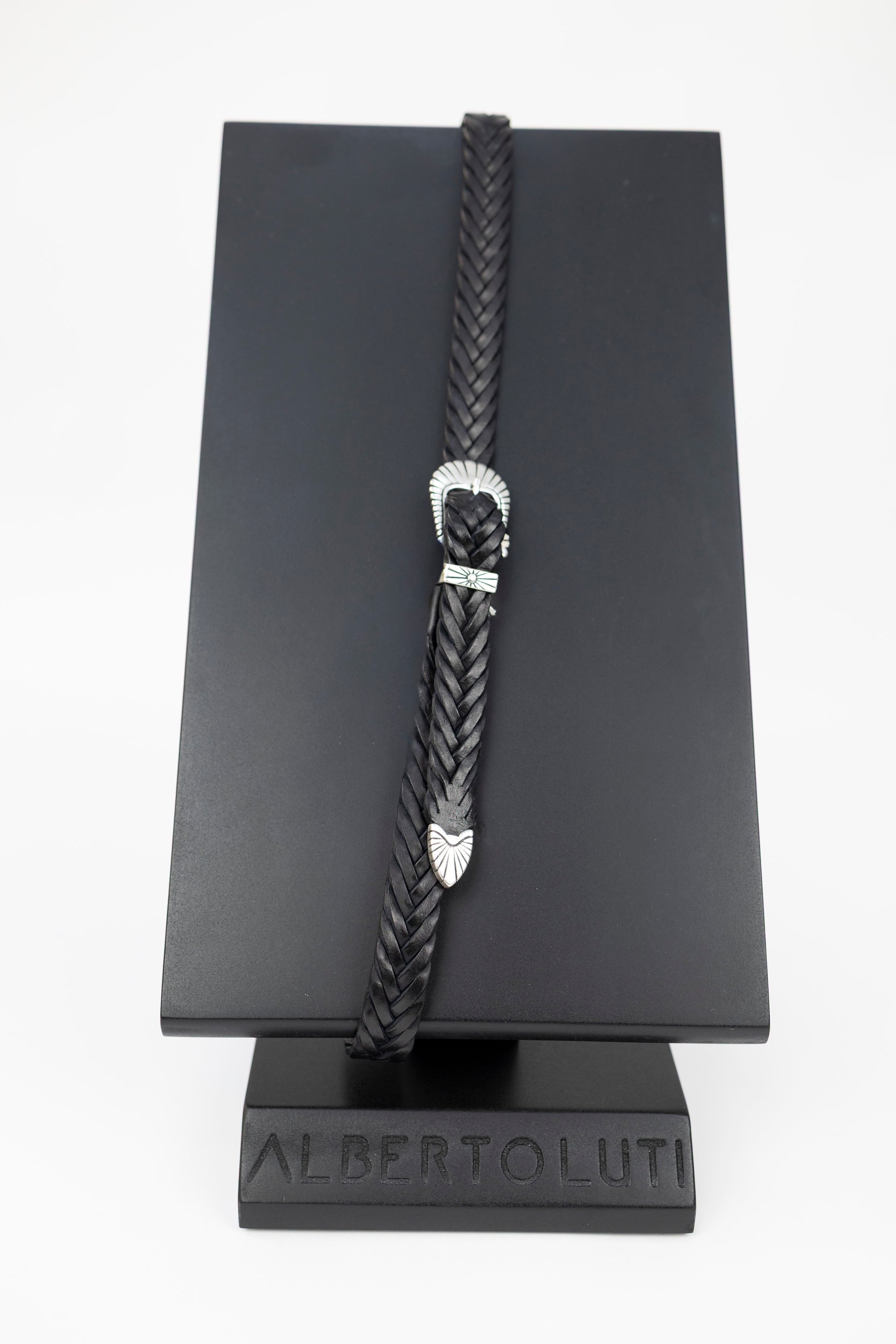 CINTURE IN PELLE TRECCIA NERO Alberto Luti