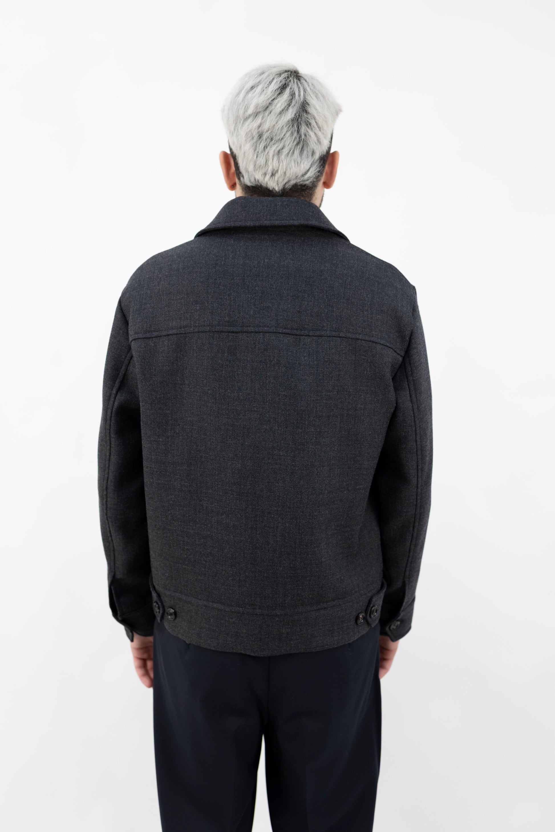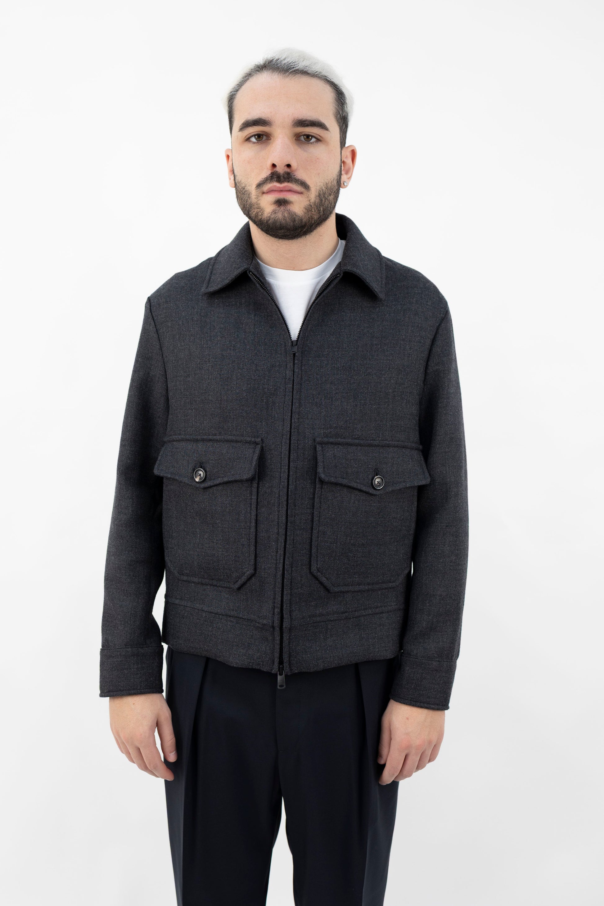 Blouson tasconato in lana vergine. Chiusura full zip con doppio cursore. Collo a camicia. Due tasche a toppa con bottoni. Polsini e fondo giacca con bottoni.