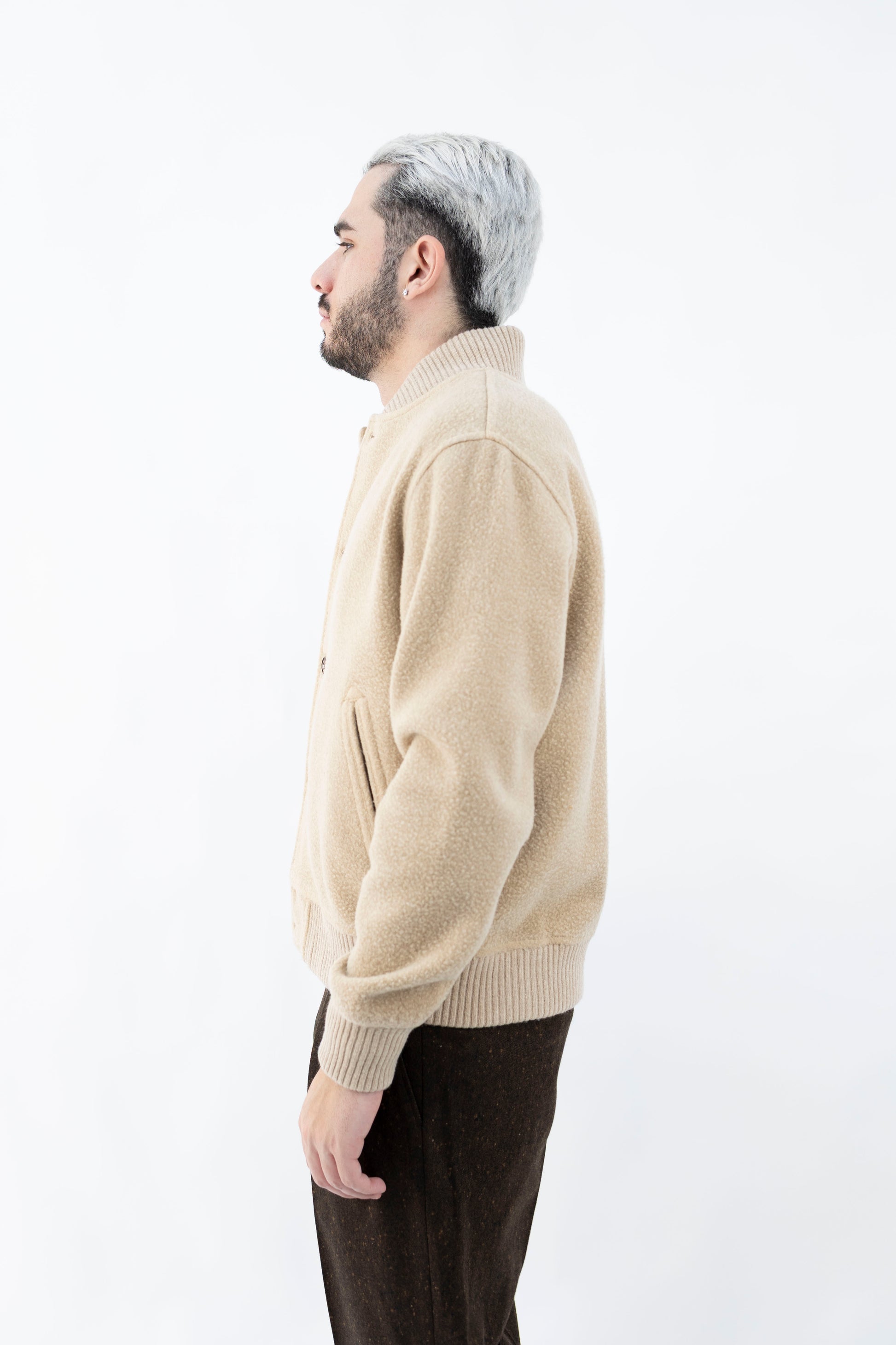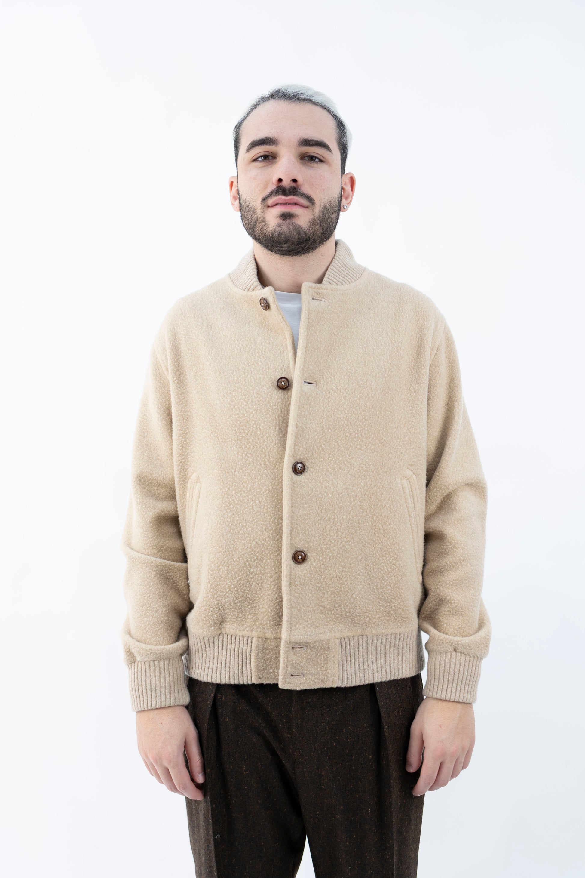 Bomber in misto lana tinto capo. Polsini, collo e fondo giacca con costina. Chiusura sei bottoni. Due tasche a filo.