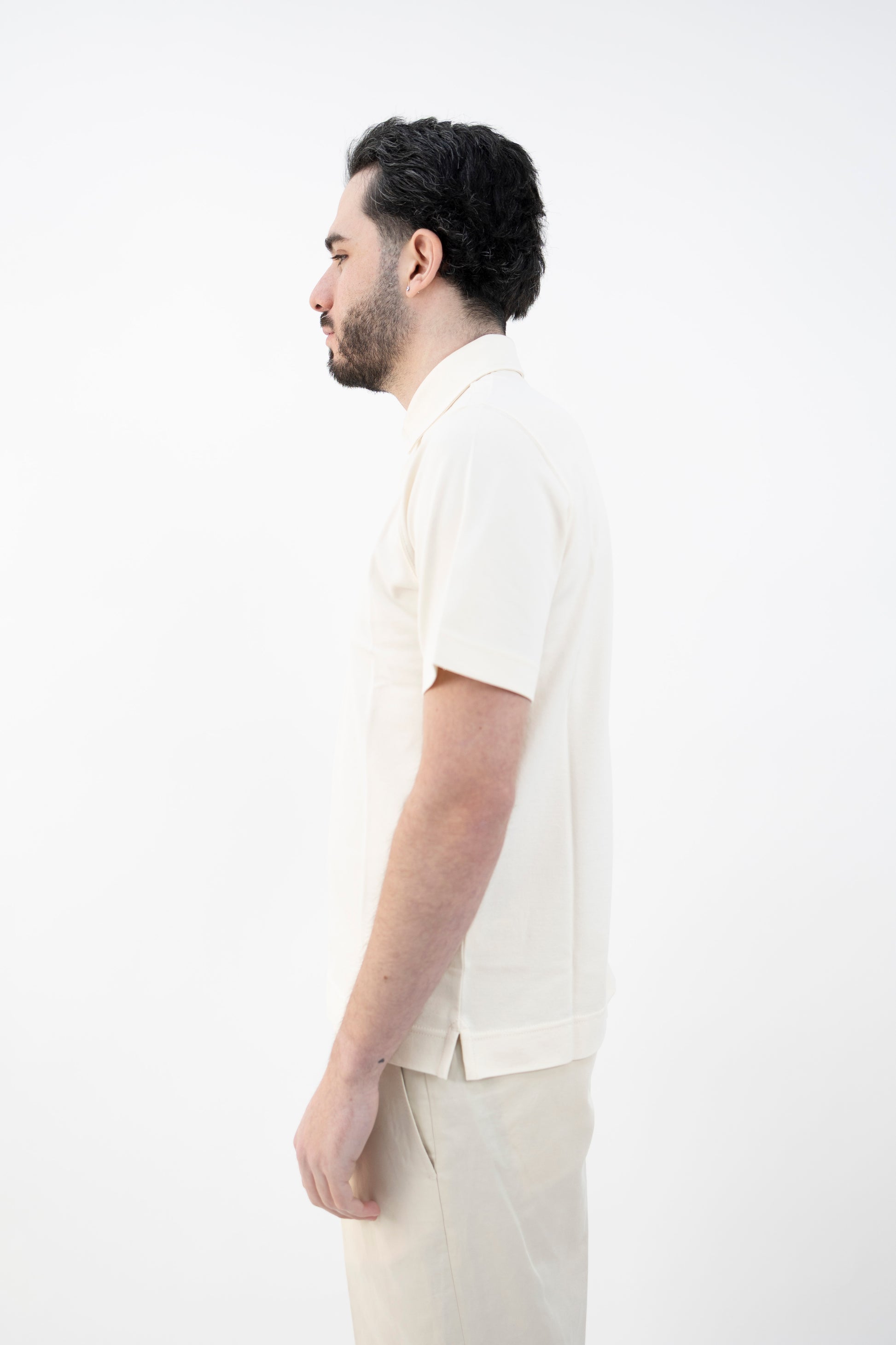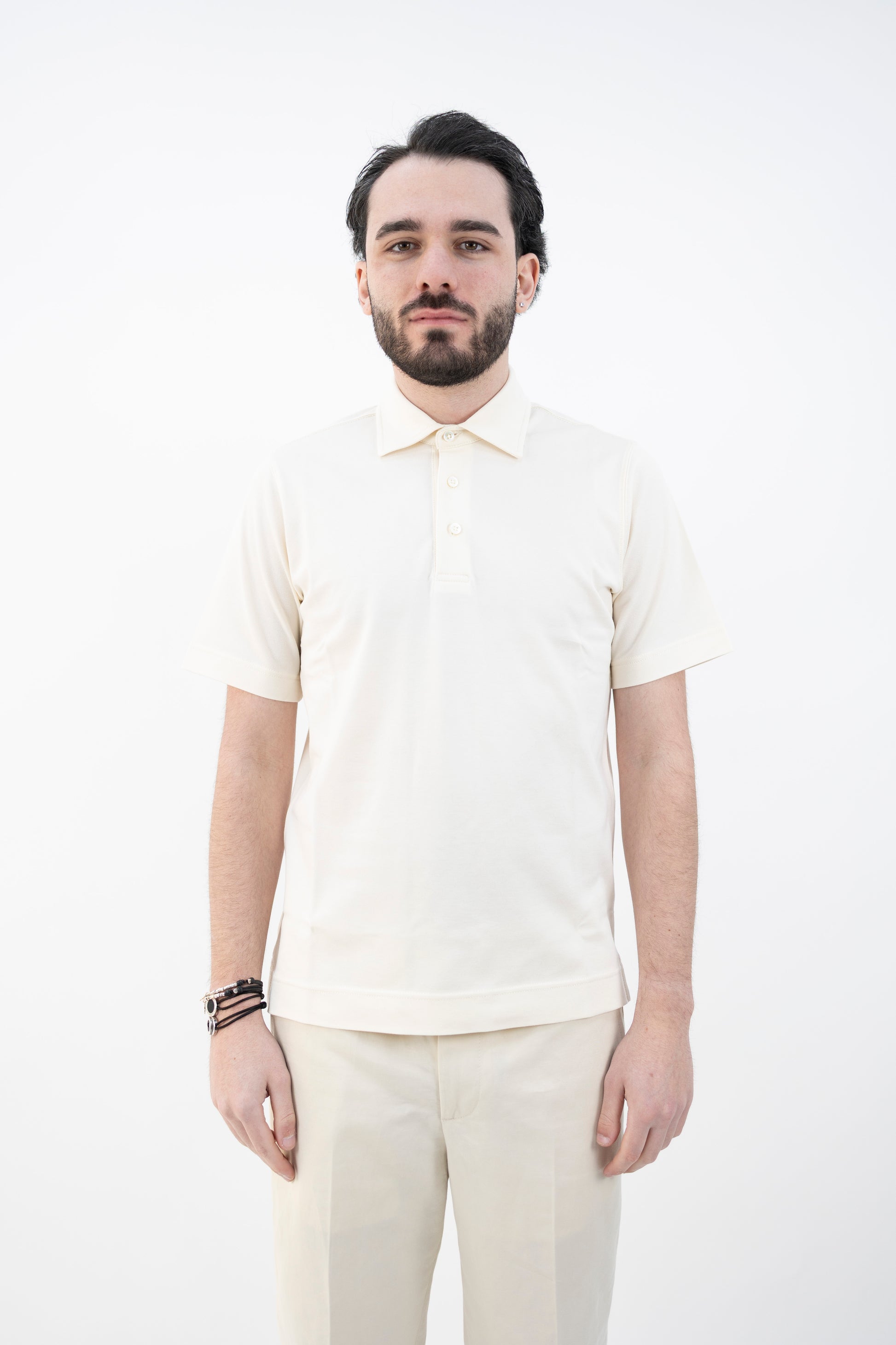 Polo in Piquet tinto capo, Chiusura tre bottoni, Impuntura fondo maglia, spacchetti laterali.
