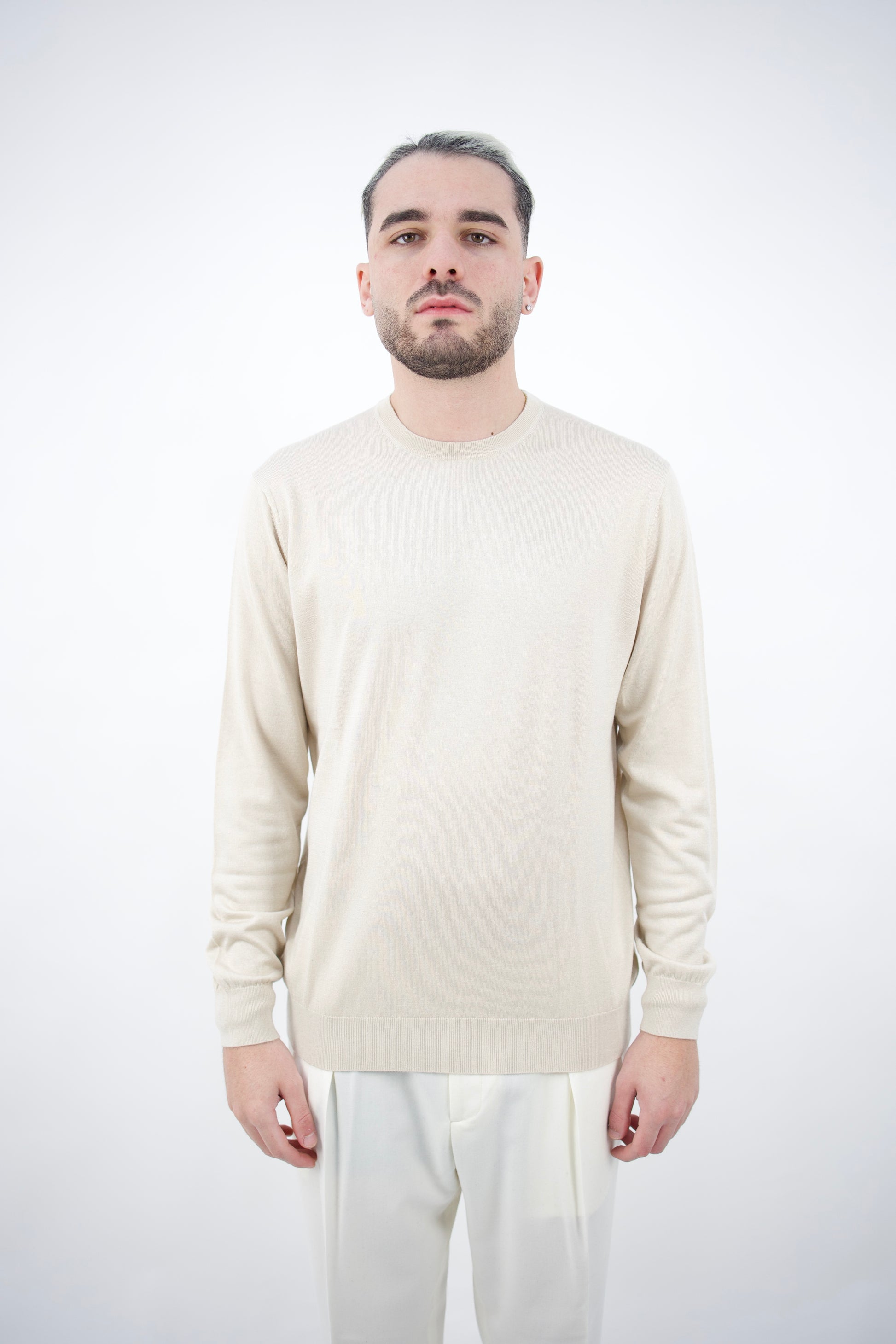 Maglia girocollo in cashmere & seta con polsini , girocollo e fine maglia a costine.
