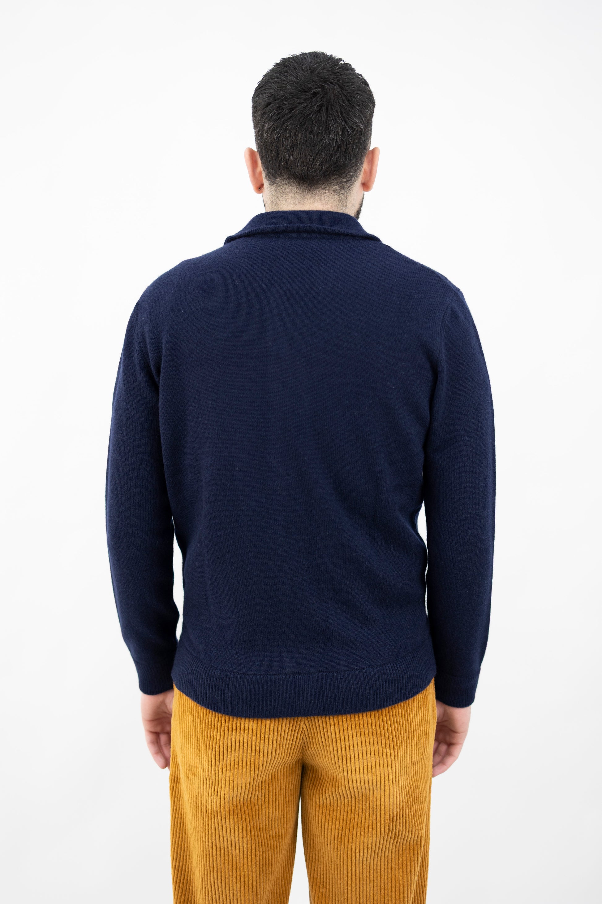 Cardigan realizzato in un pregiato mix di Lana e Cashmere. Collo a camicia, chiusura frontale con bottoni, tasca applicata sul petto, due tasche laterali a filo. fondo manica e fondo maglia a costine.