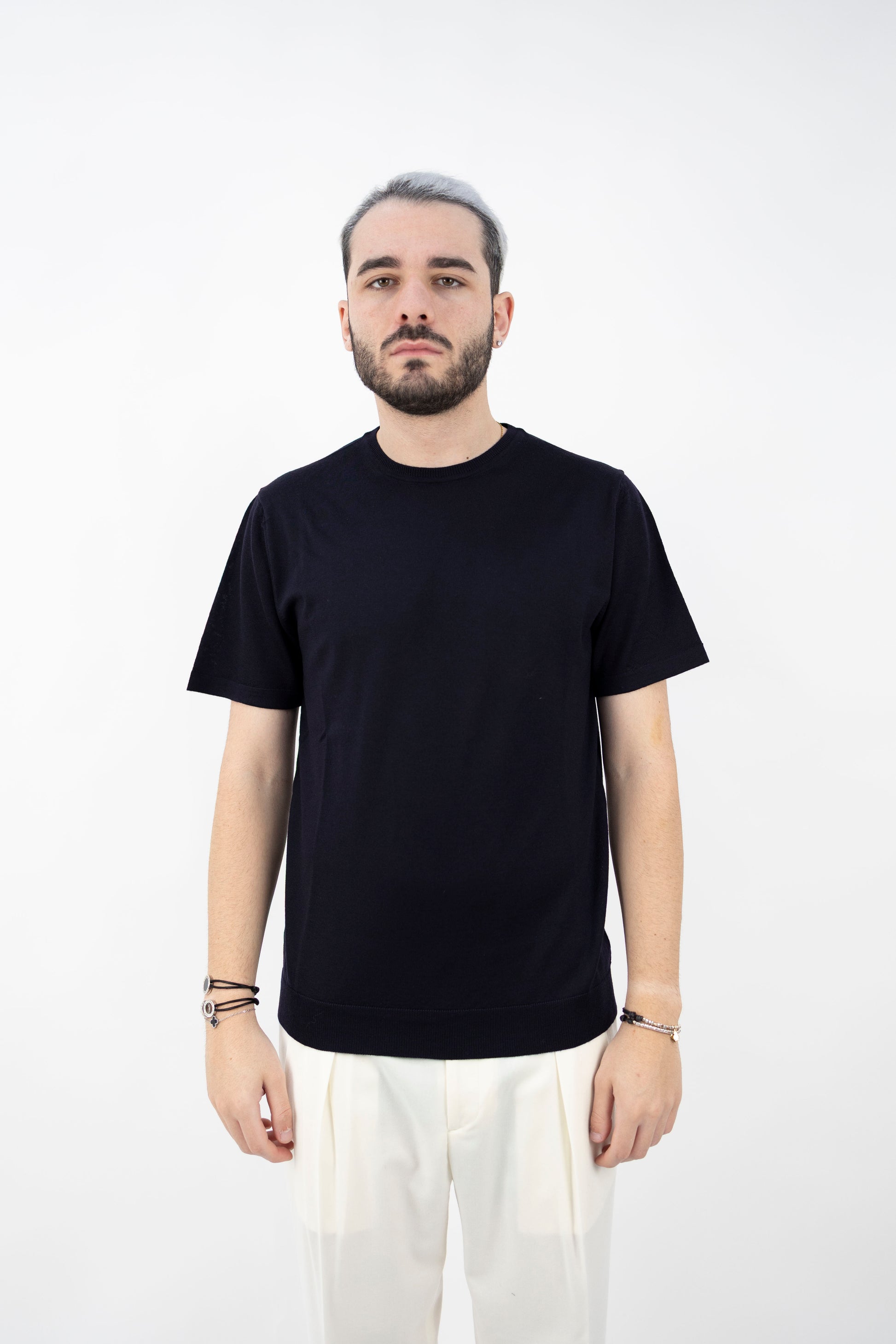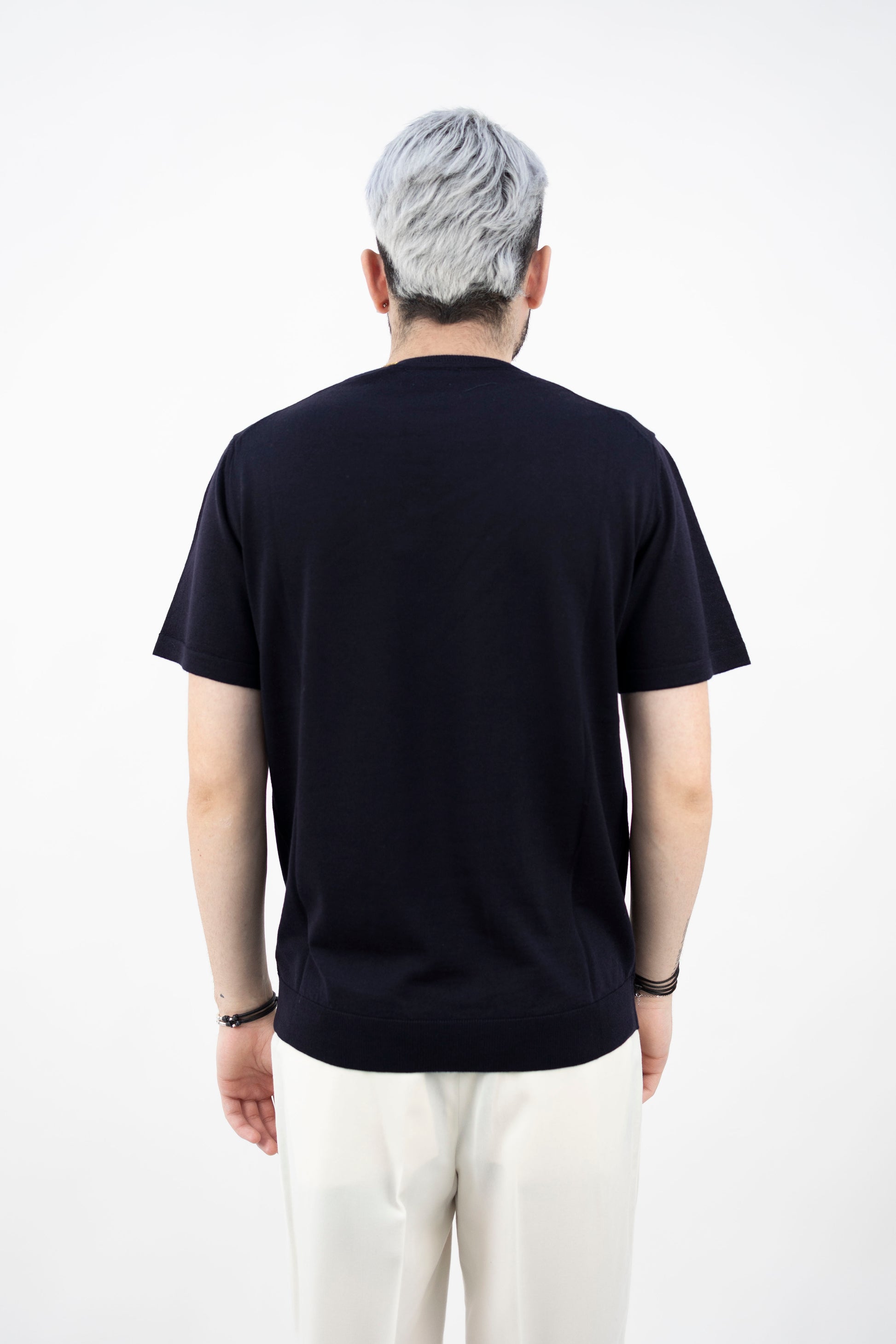 GIROCOLLO MANICA CORTA IN LANA BLU NOTTE DF0019 023 DANIELE FIESOLI
