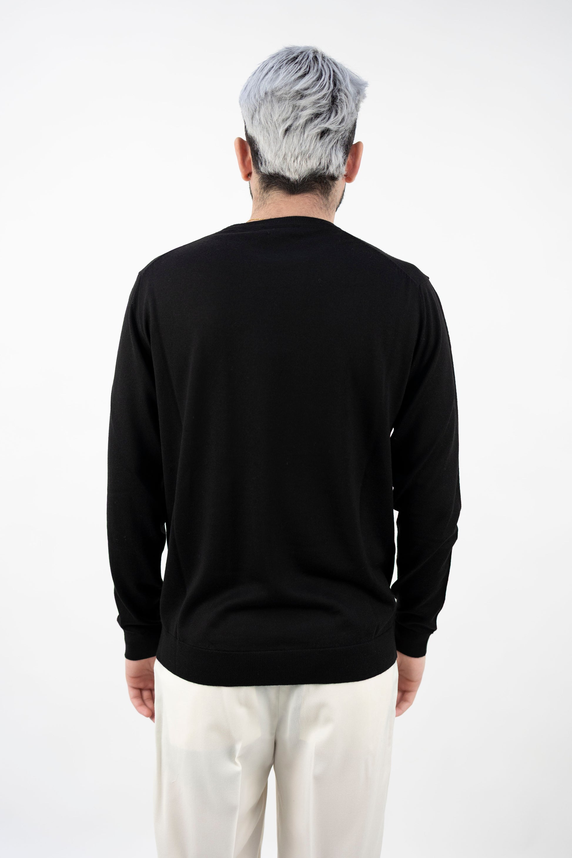 Girocollo manica lunga realizzato in 100% lana merinos extrafine. Con polsini e fine maglia a costine.