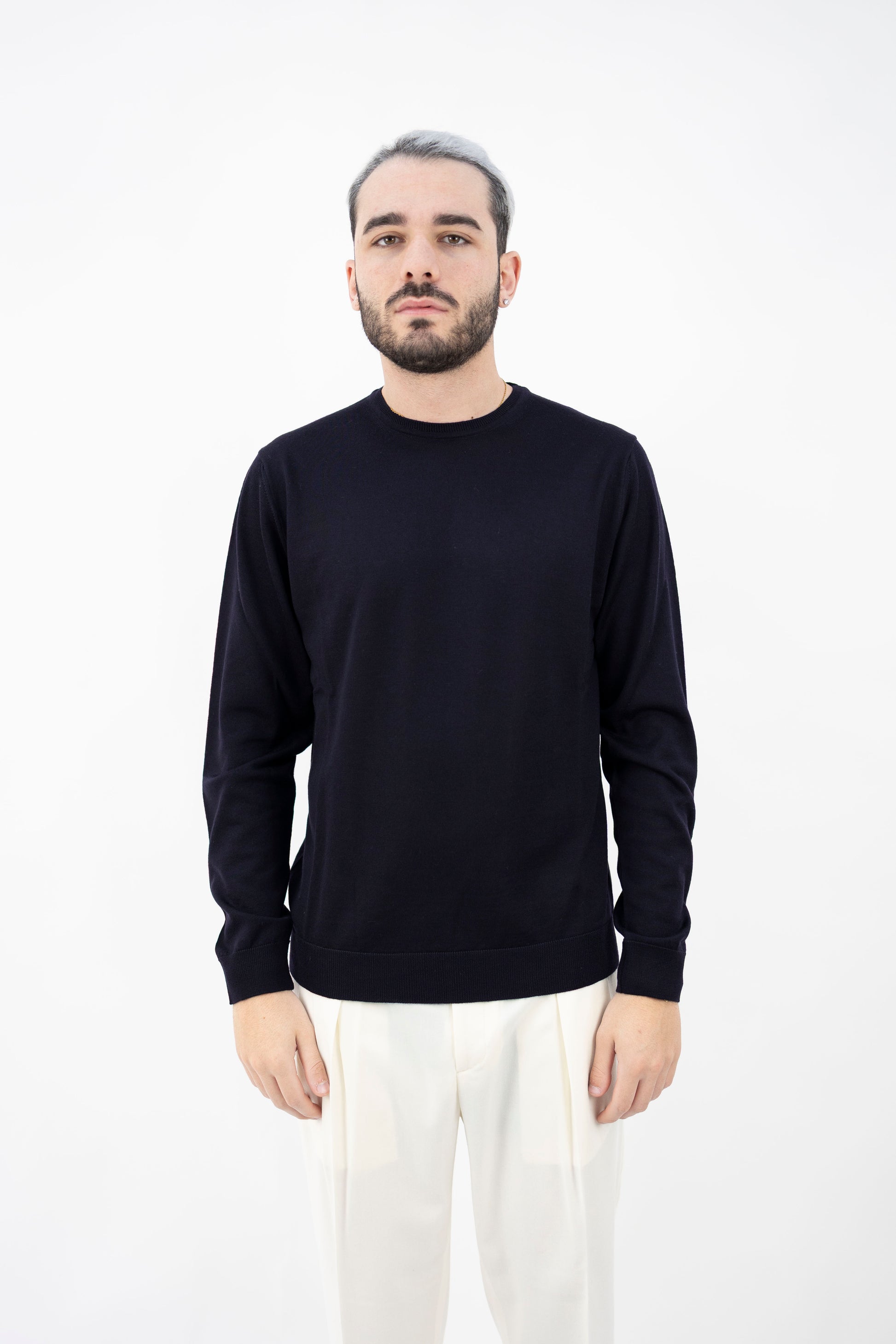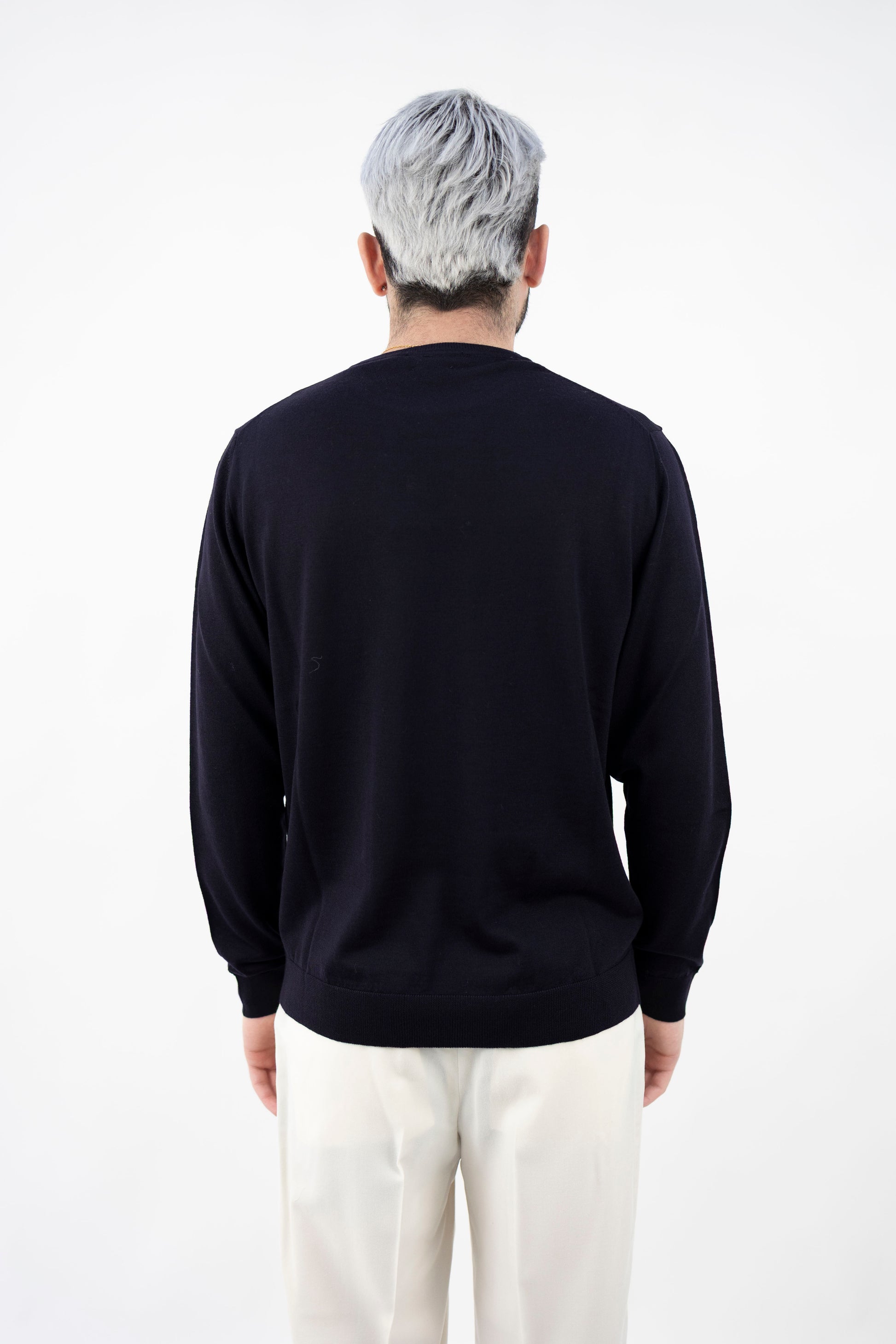 Girocollo manica lunga realizzato in 100% lana merinos extrafine. Con polsini e fine maglia a costine.