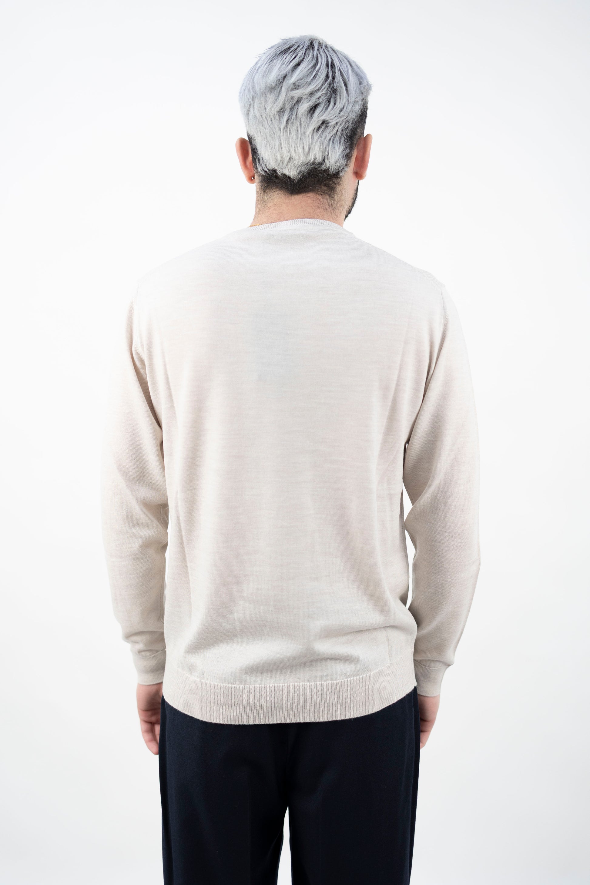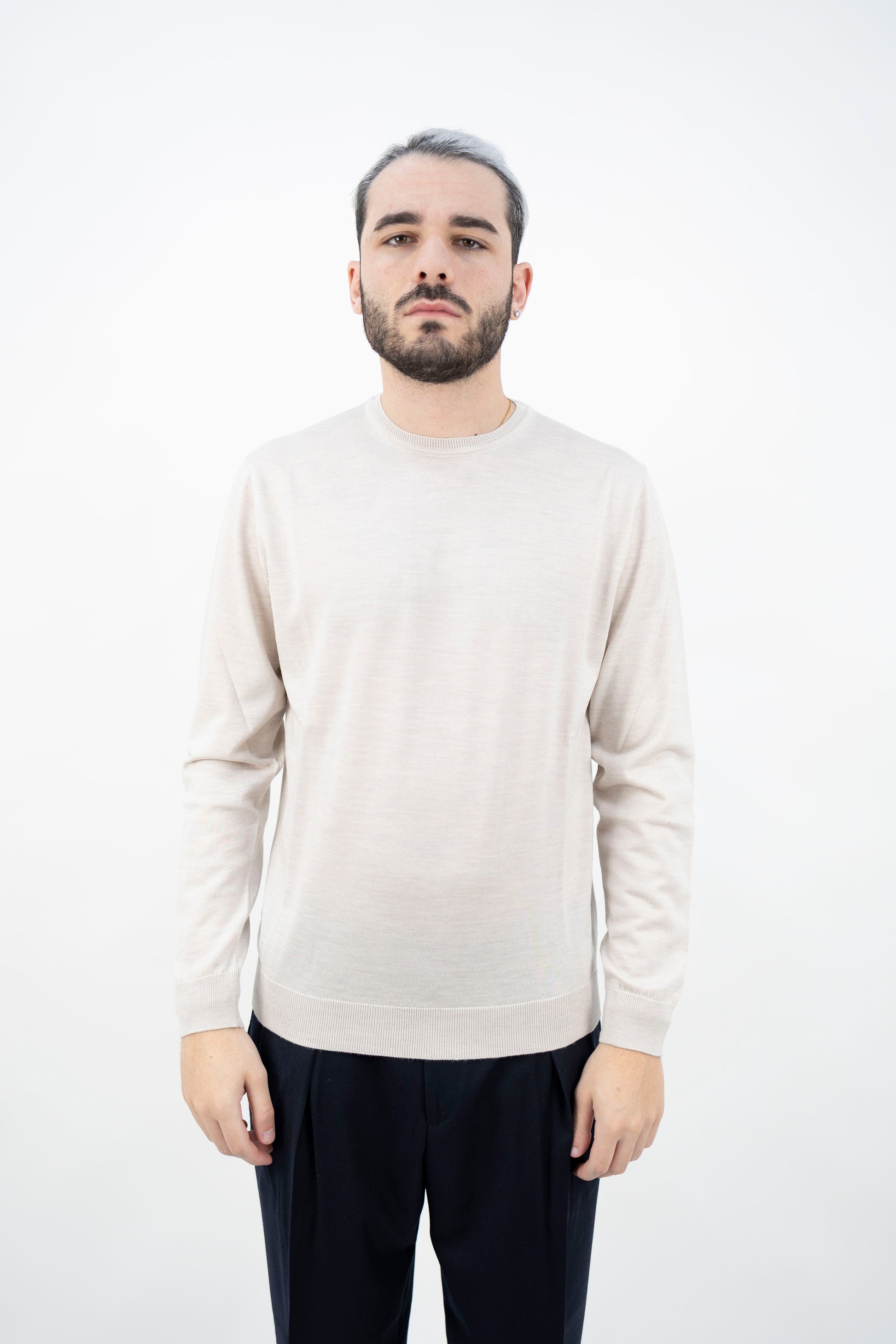 Girocollo manica lunga realizzato in 100% lana merinos extrafine. Con polsini e fine maglia a costine.