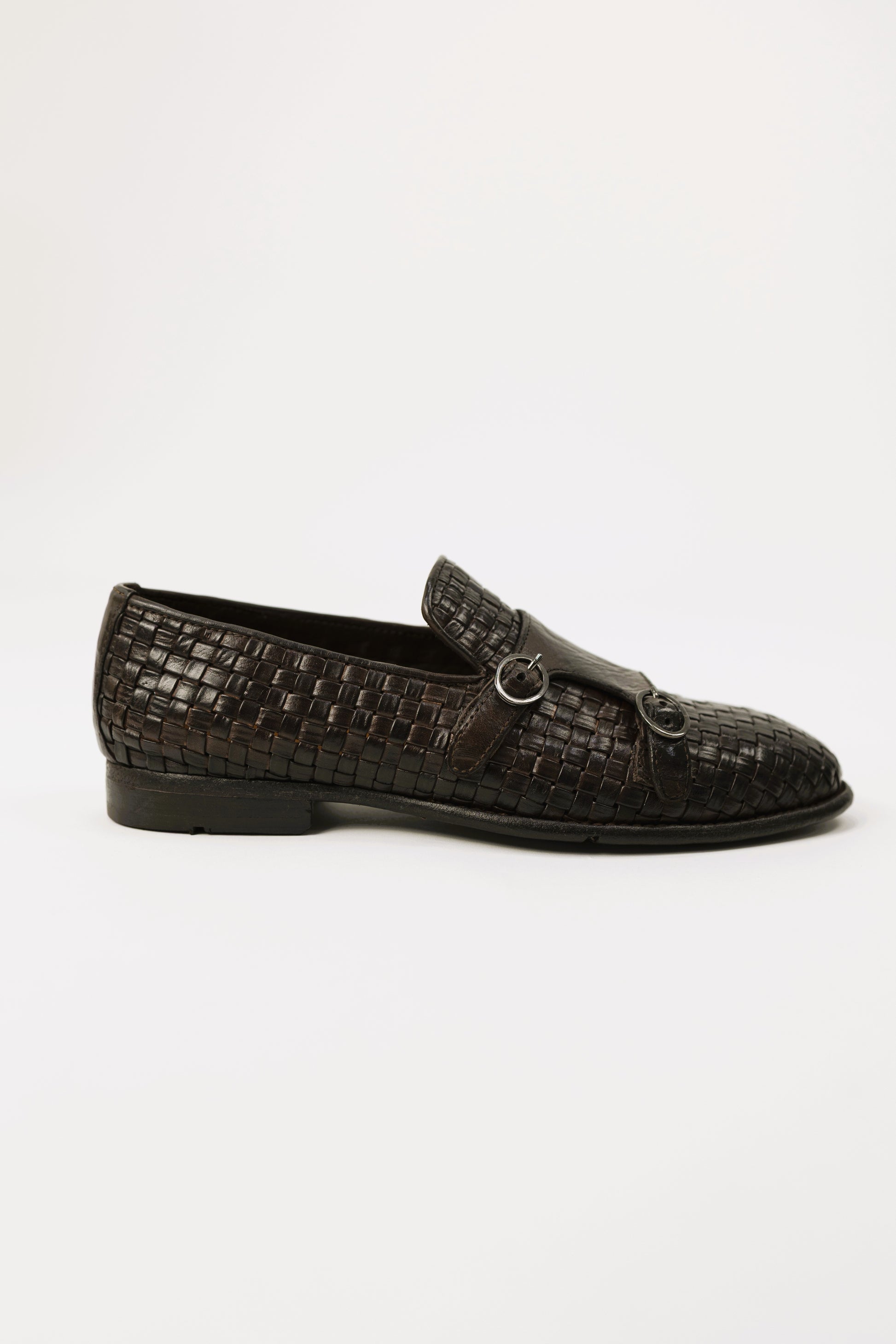 Mocassino doppia fibbia in Pelle intrecciata a mano.