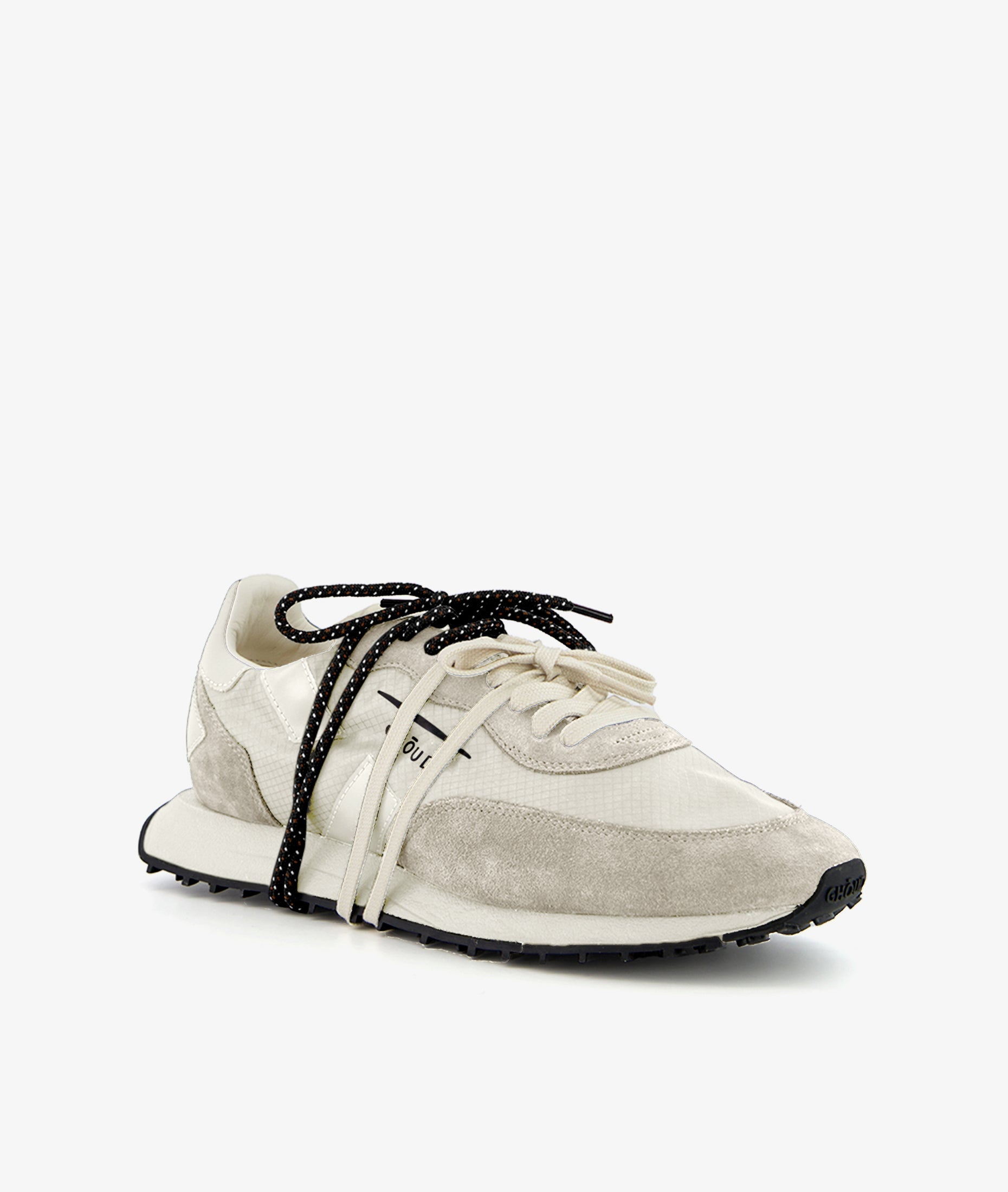 Sneakers in ripstop e suede bianco con dettagli tecnici. Nella tonalità bianca, le sneakers Rush Framework di Ghōud sono realizzate in ripstop resistente con inserti in suede morbido. Montate su una suola ammortizzata, sono rifinite con dettagli contemporanei, tra cui cuciture tecniche e l'iconico logo laterale.